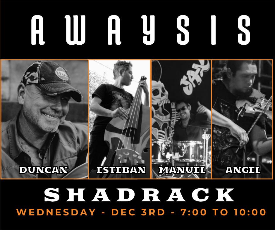 Join us Wednesday December 3 for The Shadrack Band! A mix of country and classic rock.