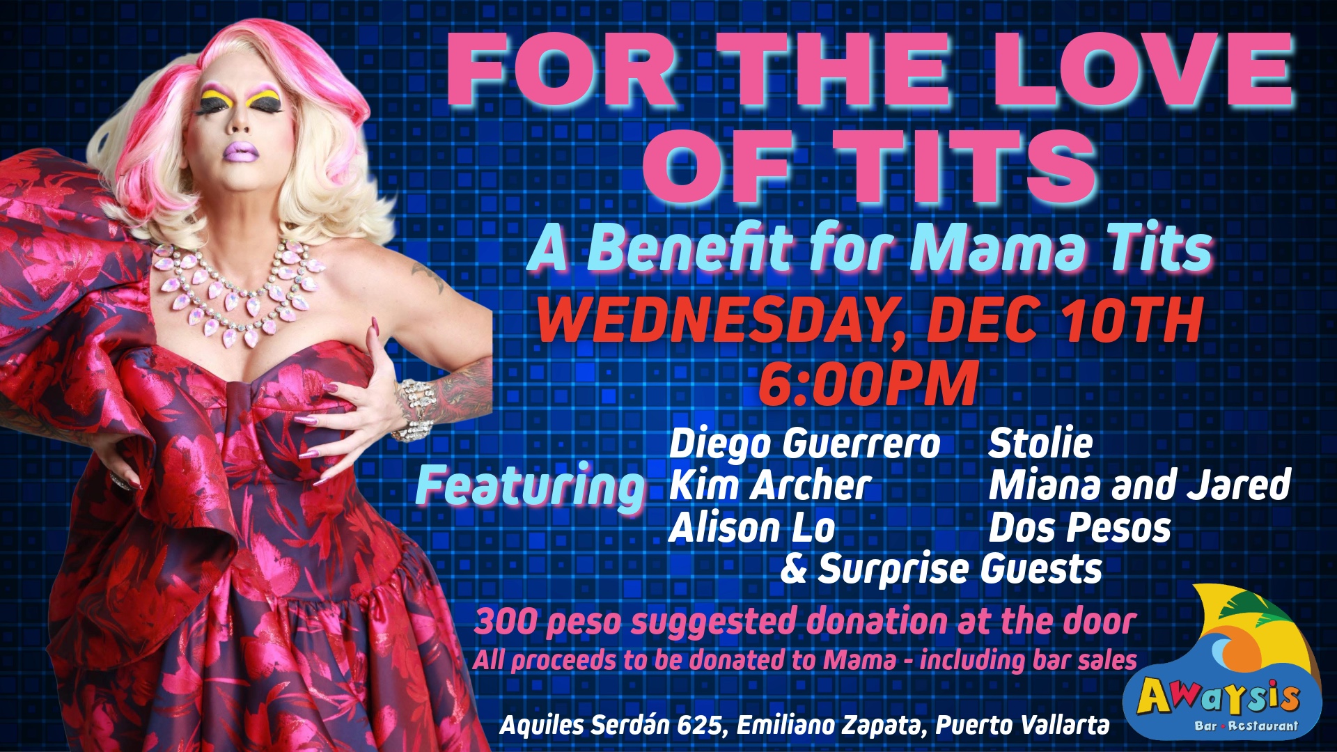 Puerto Vallarta is coming together for one unforgettable night to support beloved drag icon Mama Tits, who is currently facing serious medical challenges requiring ongoing treatment. To help with medical costs …
